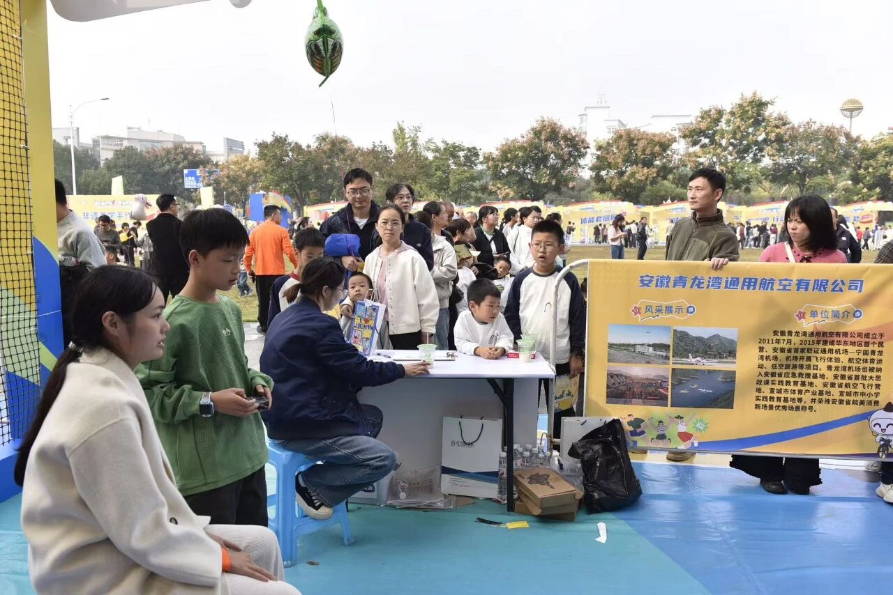 展位前聚集了大量市民,作为活动的重要参与单位,青龙湾机场设置了特色展位,通过专业讲解和互动展示,向市民普及航空知识,展现通用航空的魅力。展位前始终人头攒动,成为活动现场最受欢迎的打卡点之一。